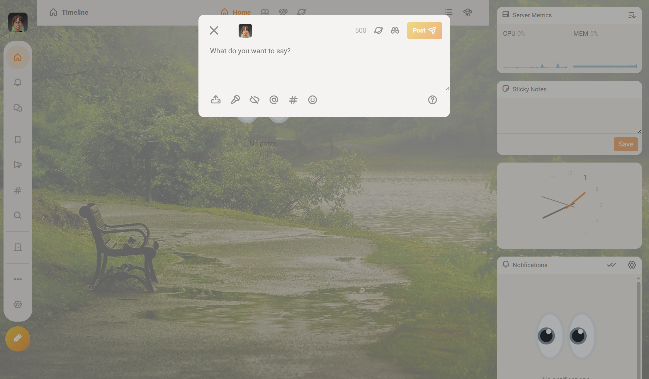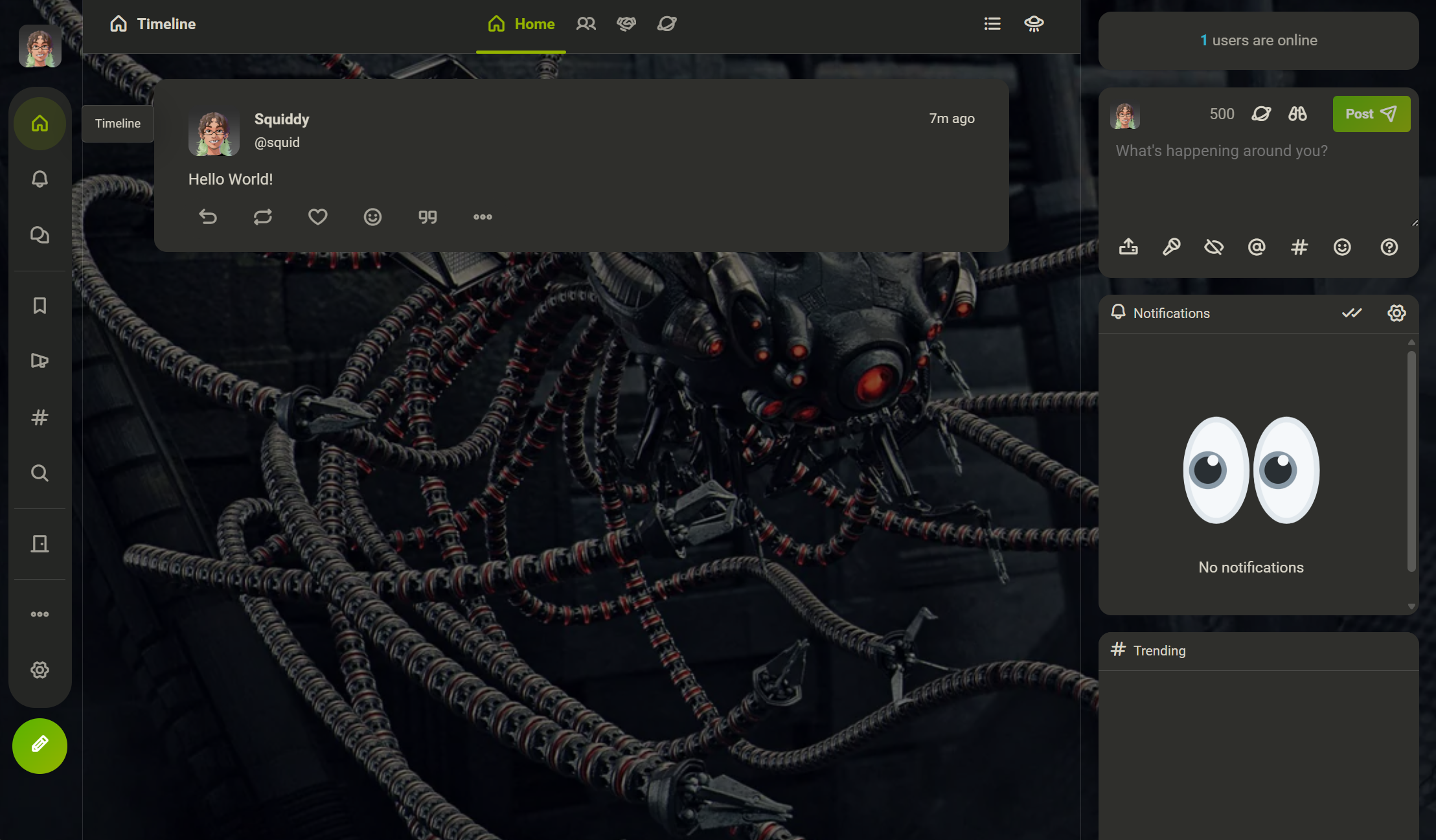 Countless other features currently exist, such as channels for posting about specific topics, direct messages, group chats, list creation, and the ability to quote users. Users can also upload videos and photos and suggest custom emoji. I'm looking to potentially add user Stories, and the ability to stream in the future.