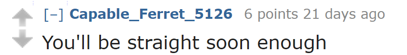 Of course, rule number 4 is poorly enforced, one of the current top-ranking posts on r/dyleconversion, posted more than 2 weeks ago, is titled “I became bi thanks to you guys ❤️” from 22-year-old user “Gullible_Use1565” – the comments and replies are predictable: