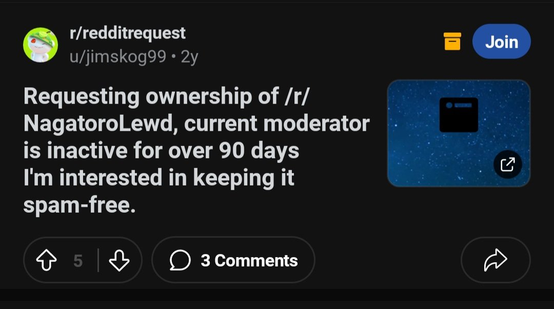 James has asked for ownership of many other porn and fetish subreddits, frequently NSFW lesbian subreddits.